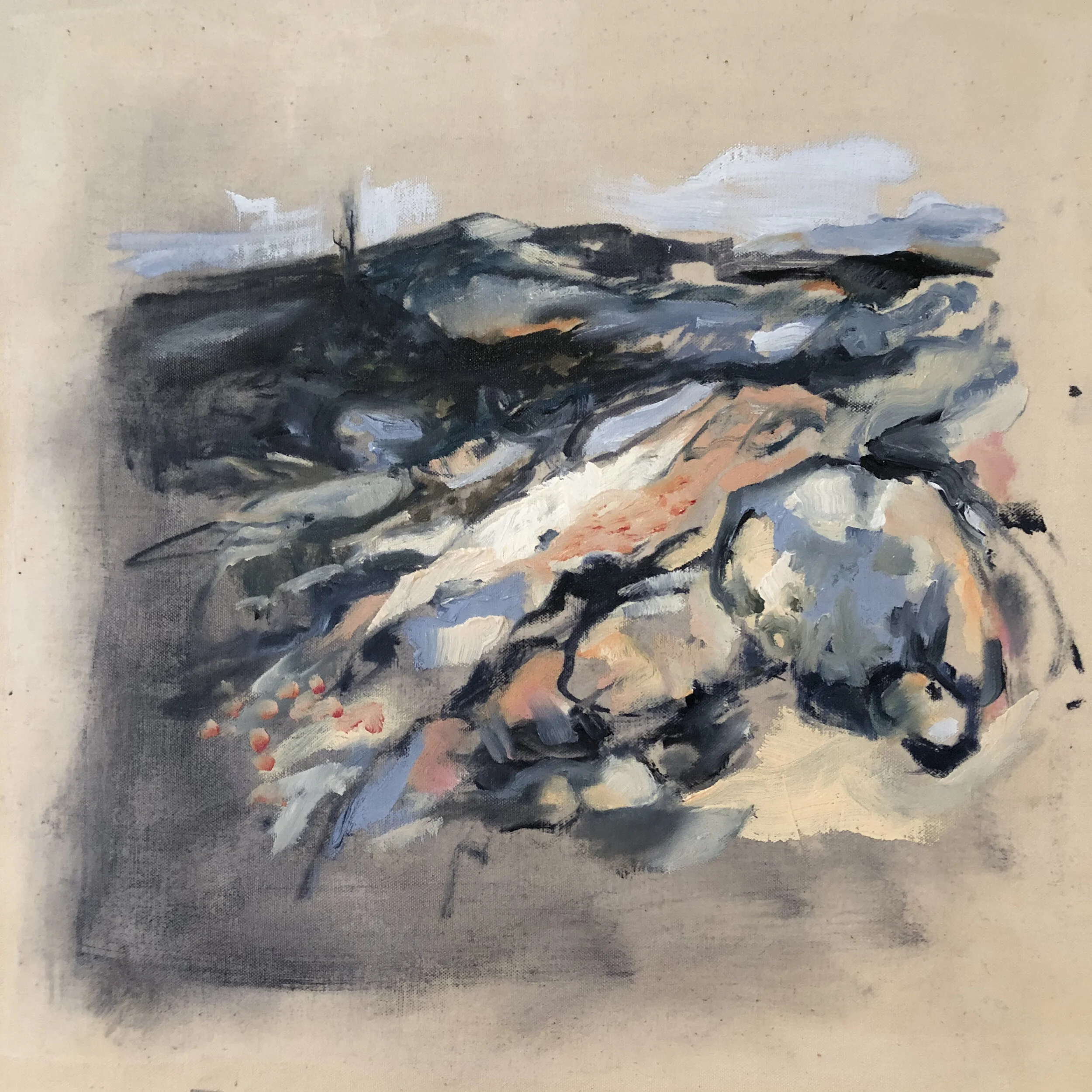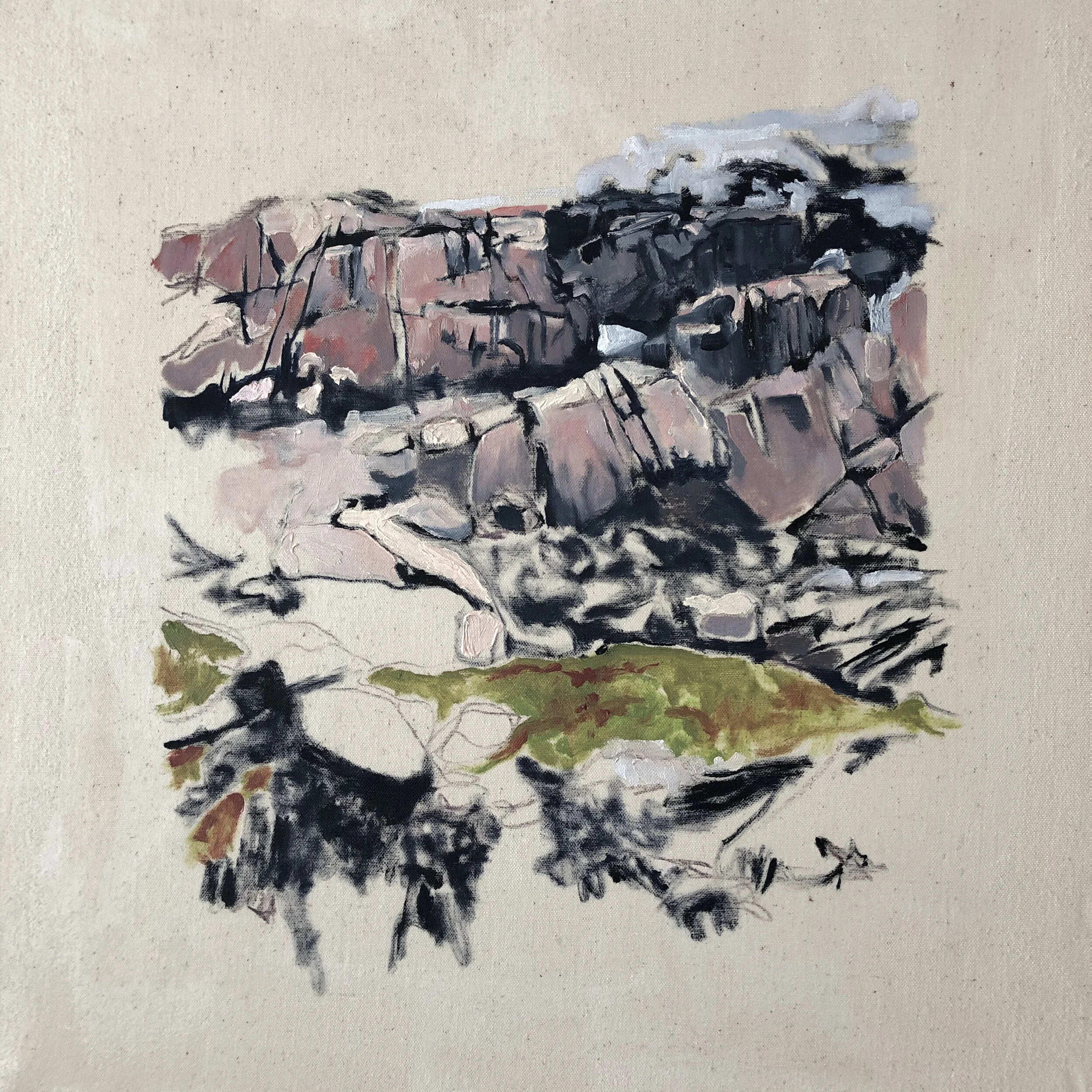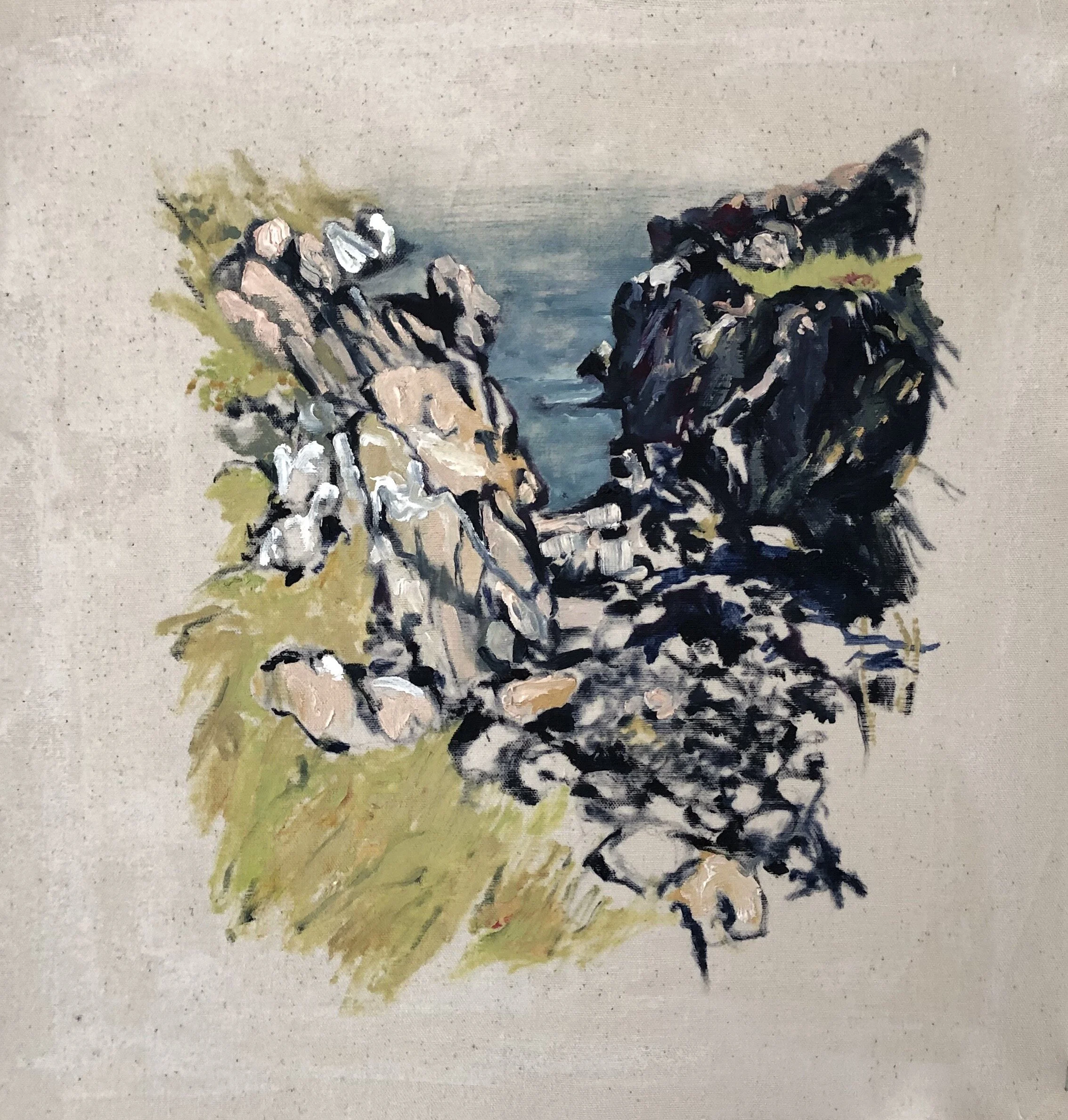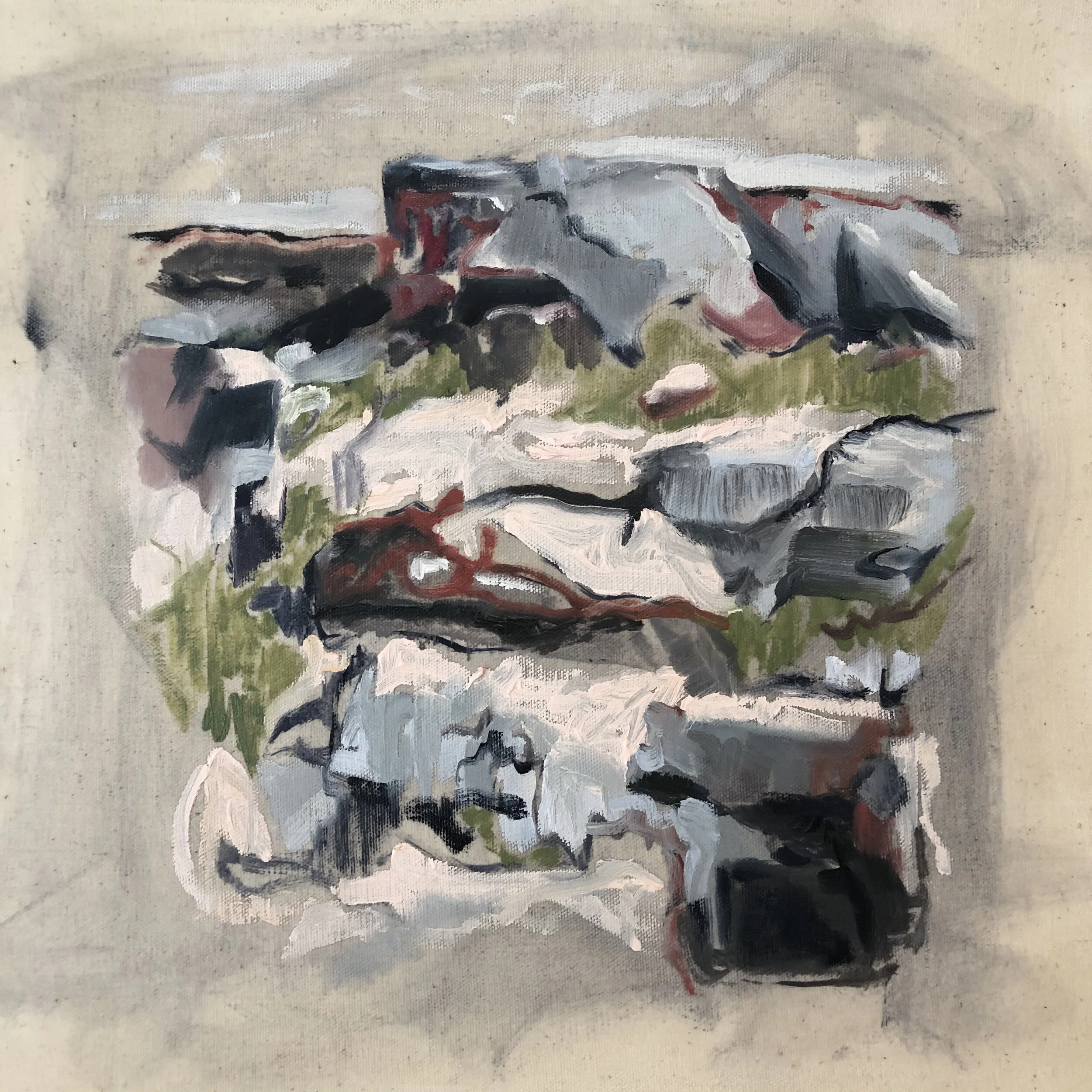 Utilizing technical elements like colour, space, and shape, the sense of a specific moment is implied as is a closeness of my relationship to a subject without being illustrative. A documentation of life experiences, which include both photographs and field journals, function as both inspiration and source material. I enjoy the opportunity to relive the experience, relish in the opportunity to focus on it, and through art-making, be able to more fully understand and contemplate my relationship to my world. Each painting in this series is based on a trail on Fogo Island, NL, that I hiked during a month long residency in the fall of 2019, and facilitated an intimacy with ‘place’ that may otherwise not have occurred.